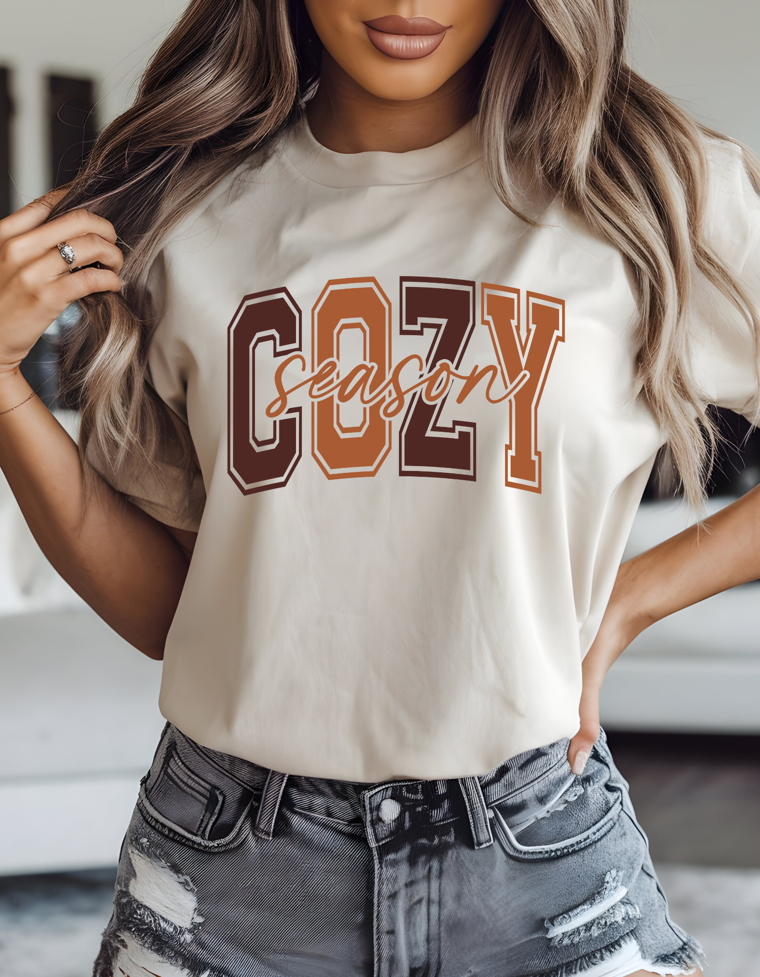 Celebrate fall with the Cozy Season graphic tee, designed to capture the essence of autumn's rich palette. Featuring a vibrant mix of warm hues, this tee effortlessly blends comfort with seasonal style. Perfect for layering or wearing on its own, it brings a subtle sophistication to casual wardrobes while embracing the inviting colors of the season. Ideal for those who appreciate thoughtful design paired with everyday comfort.