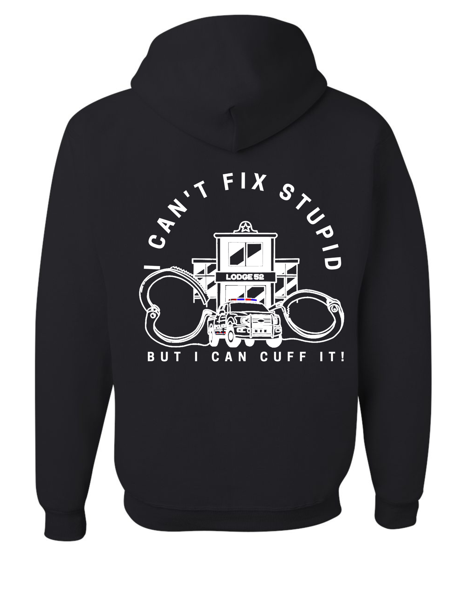 This Black Fleece hoodie is a must-have for any fan of FOP Lodge 52. Featuring the iconic badge on the front and a bold design on the back, this hoodie is a stylish and comfortable way to show your support. Made with soft fleece, it's perfect for staying warm and cozy while representing your favorite organization.